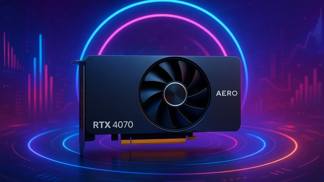 A RTX 4070 Aero possui 12 GB de VRAM GDDR6X, o que a torna adequada para lidar com tarefas pesadas e jogos modernos.