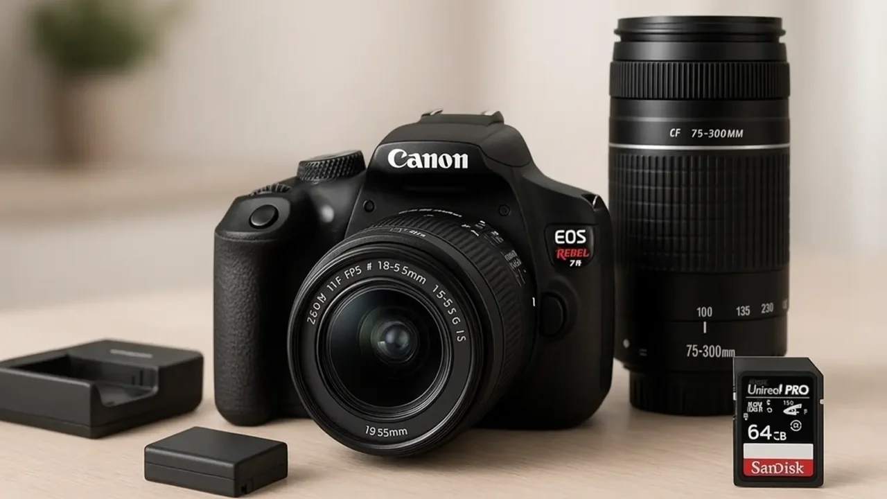 Em suma, a Canon EOS Rebel T7 é uma escolha certeira para quem busca entrar no mundo da fotografia com qualidade e segurança. Seu conjunto completo com lente e cartão de memória torna o investimento ainda mais atrativo. Embora não grave em 4K, entrega tudo o que se espera de uma DSLR acessível.